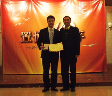 姚毅總經(jīng)理為置恒十周年“奉獻獎”獲得者周虎頒獎
