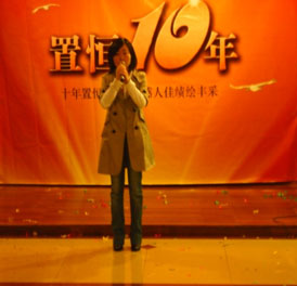 2010年11月20日下午,氣球高懸、彩帶飄舞,幸福熱情洋溢在每一個置恒人的臉上,此時此刻,度假村主會場已成為置恒人歡樂的海洋。在象征著置恒十年的10聲洪亮清脆的鐘聲后,以“回顧、感恩、展望”為主線的“置恒十周年慶典活動”正式開始。慶典活動以手語表演《感恩的心》拉開帷幕,讓我們一起感受置恒十年輝煌、十年榮耀。