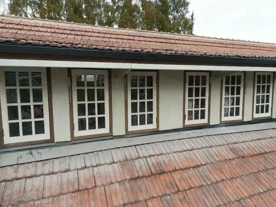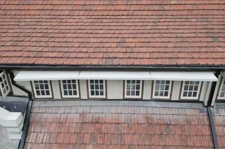 南立面作為內(nèi)山書店的主要立面是本次修繕工程的重點(diǎn),結(jié)合對(duì)歷史照片的研究分析,判定立面的原有樣式及材質(zhì),修繕團(tuán)隊(duì)使用相應(yīng)工藝進(jìn)行修繕恢復(fù);對(duì)于建筑屋面進(jìn)行翻修,重做防水和保溫層,調(diào)整高低不平之處,并對(duì)山墻壓頂、雨水檐溝、天溝落、水管及老虎窗進(jìn)行修繕。